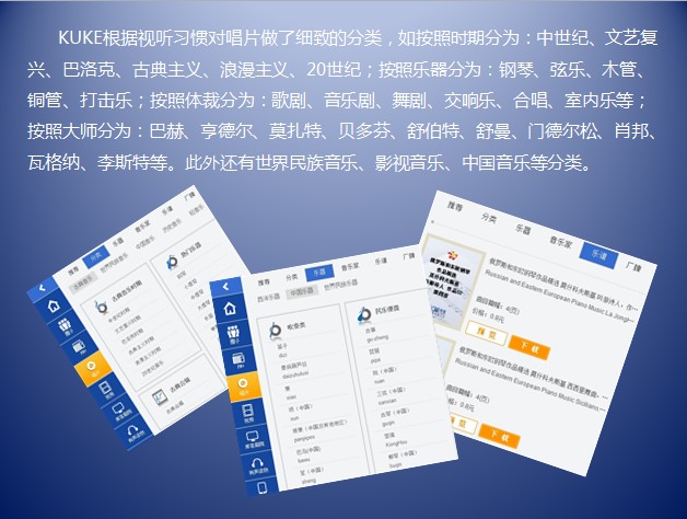 内容简介:库客(www.kuke.com)于2007年11月正式上线发布,是国内第一家专注于音乐教育、普及及发展的服务运营商。库客积极打造以互联网音频、视频在线服务为核心的用户消费服务平台,为广大音乐学习者和爱好者提供一个全面、丰富的正版音乐资源平台,致力于推动国内高雅音乐的普及,促进音乐素质教育的发展。目前国内已有逾千所知名院校、各地公共图书馆、各地党政机关院校使用库客提供的音频及视频服务,并对其海量的资源、专业的分类及优异的服务予以了高度评价。库客依托专业化管理团队,秉承“创新、服务、专业、人本”的企业文化,凭借互联网领域丰富的运营经验、专业化音乐编辑团队、技术实力雄厚的产品研发团队,致力于音乐教育产品开发与创新,根据不同类型的客户需求,为其提供专业化的音乐服务解决方案。