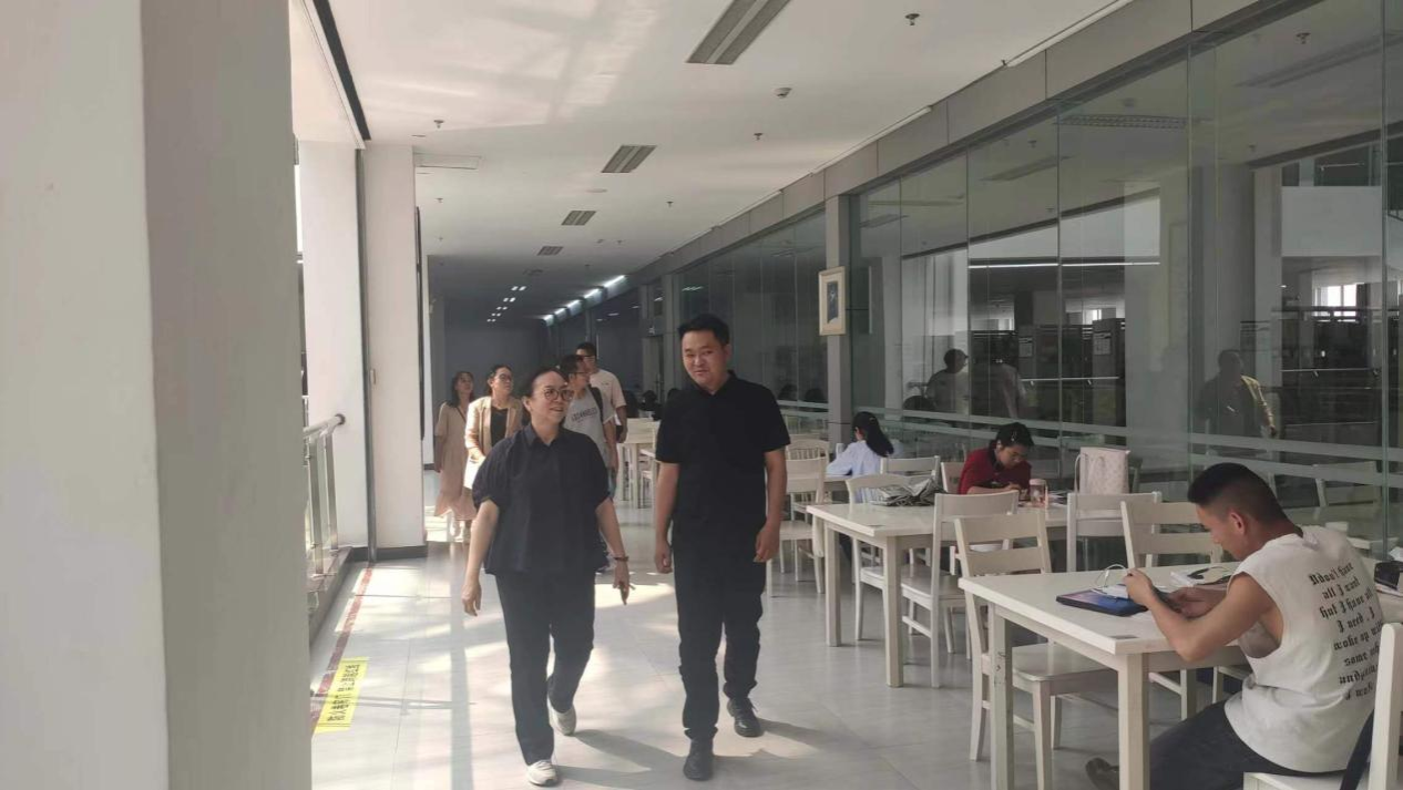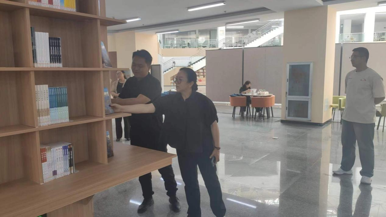 会议结束后,在馆长俸俊馨同志的陪同下,参观了图书馆的各个功能区域、书库、特色书架。穆文皓一行对图书馆丰富的藏书以及舒适的阅读环境给予了高度评价。