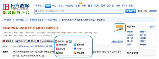 可将文献分享到微博、开心网、人人网、豆瓣等社区,或通过“推荐”功能提高文献的影响力(见图19)。