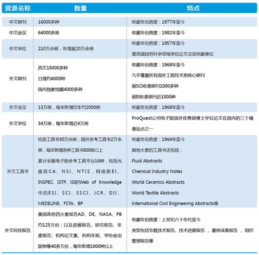 l 资源种类全、品质高。海纳中外学术期刊论文、学位论文、学术会议论文、标准、专利、科技成果、特种图书、新方志、法律法规、机构、专家等各类信息资源,具有广泛的应用价值。