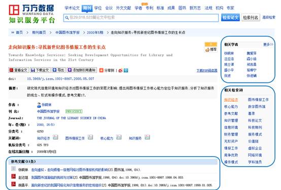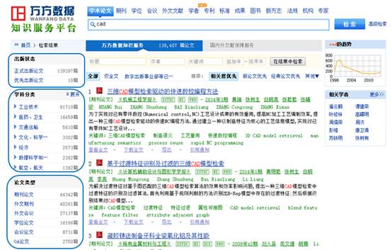 万方数据知识服务平台(Wanfang DataKnowledge Service Platform)集品质知识资源、先进的发现技术、人性化设计于一身,是国内一流的品质知识资源出版、增值服务平台。目前平台出版的资源总量超过2亿条,全面覆盖各学科、各行业。基于海量高品质的知识资源,运用科学的方法和先进的信息技术,构建了多种增值服务,是国内最大、最齐全、最权威的中文数据库服务平台之一。