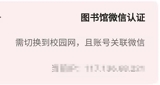 备注:(1)采用“图书馆微信认证”读者需要在IP范围内认证(校园IP范围内有线网络或无线网情况下方可认证成功),4G/5G移动网络或者外部网络无法认证成功。