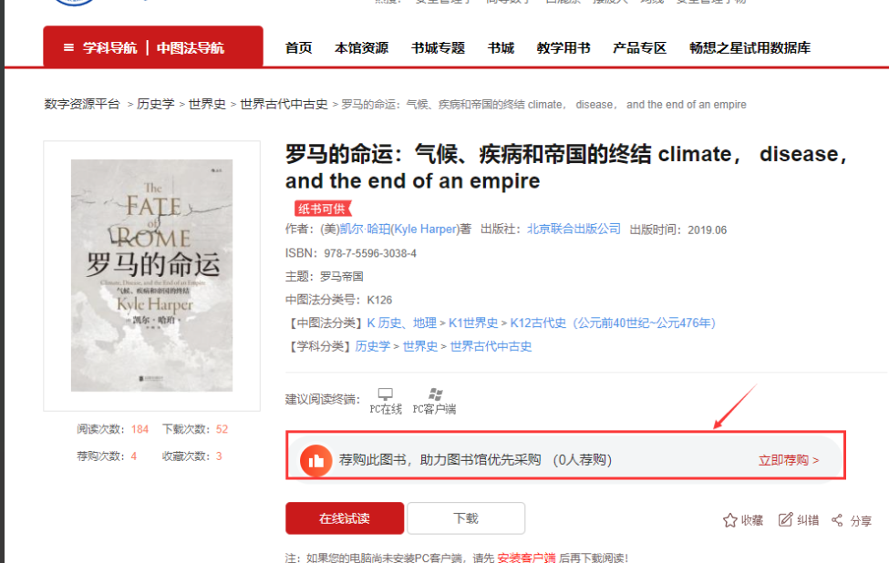 (1)PC端首页--书城标签-进入详情页-可以试读、荐购/PDA